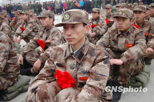 12月11日下午,山东省聊城市首批445名新兵告别家乡,奔赴祖国各地,开始他们的军旅生活。 中新社发 张振祥 摄