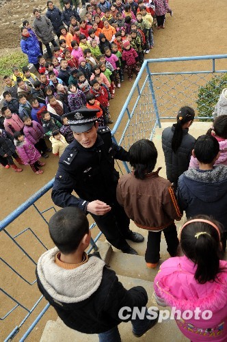 12月14日,山东省枣庄市某公安分局组织民警走进辖区中小学校,开展预防踩踏事故安全教育活动,举行预防踩踏事故应急演练,增强师生安全意识,提高自救能力。中新社发 李宗宪 摄