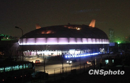 12月25日晚,上海世博会日本国家馆首次亮灯,庆贺次日竣工。其灯光忽明忽暗,象征生命在呼吸。日本馆半圆型的大穹顶,宛如一座“太空堡垒”,据悉,这是一层含太阳能发电装置的超轻“膜结构”,使之成为一座会“呼吸”的展馆。中新社发 潘索菲 摄