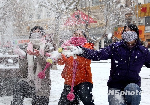 12月27日,受强冷空气影响,江苏省连云港降下今冬第一场瑞雪,气温低至零下4度,降雪将连云港大地装扮得银装素裹。虽然降雪给市民出行带来了一些不便,但漫天飞舞的雪花给假日的人们带来许多惊喜。中新社发 王健民 摄