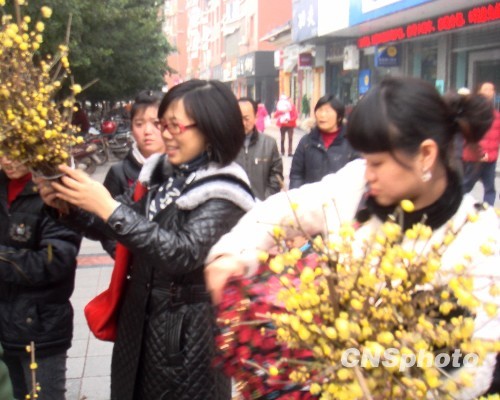 1月7日下午,市民在广安市购买梅花。当日,大寒天气,四川省广安市城南大街小巷到处闻到梅花香。连日来,一些城郊花农纷纷将一束束盛开的梅花剪起送进城市卖给市民,富了花农香了城市。中新社发 杜修战 摄