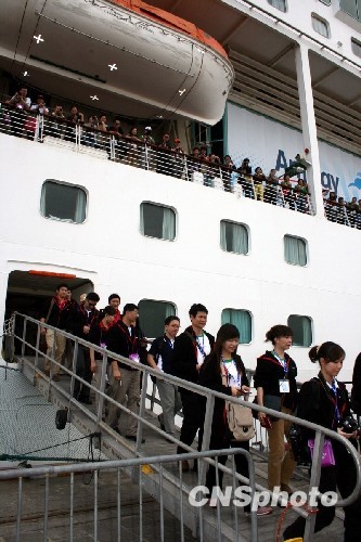 2月8日,载着1600名台湾安利集团员工的“海洋神话号”邮轮,向海口秀英码头抛下缆绳。据海南省台办介绍,这是台湾与海南两岛之间“邮轮游”的首航,也是海南建省以来接待的规模最大的台湾旅游团队。中新社发 关向东 摄
