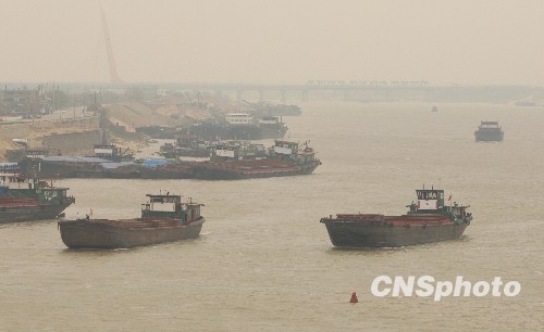 3月24日,一些货运船正在赣江南昌八一桥水域行进。进入今年2月下旬以来,由于降雨天气较多,赣江、饶河、抚河等5大河流水位均出现不同程度的上涨,特别是赣江受3月初以来的持续降雨天气影响,水位迅速上涨,当日上午8时,外洲水文站水位为15.94米,出现近20年来罕见早汛。中新社发 朱文标 摄