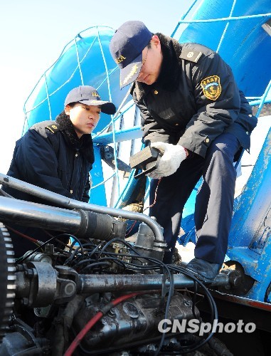 3月25日,黑河船检处验船师深入到黑河港务局,对即将参加中国黑河港至俄罗斯布拉戈维申斯克港国际航线运营的4艘气垫船,分别进行了中间检验和换证检验。由于近期气温回暖,冰上汽车运输接近尾声,根据黑河市政府和阿穆尔州政府口岸客货运输协调小组就结束冬季冰上汽车运输和组织开通2010年流冰期气垫船运输工作会议达成的协议,中国黑河港至俄罗斯布拉戈维申斯克港国际航线气垫船春季运输将于近日开通。中新社发 邱齐龙 摄