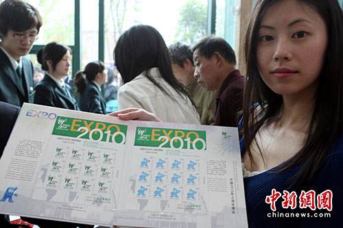 5月1日,上海世博会开幕式纪念邮票开始发售,受到集邮爱好者的青睐。中新社发 汤彦俊 摄