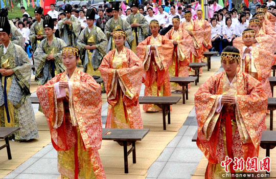 5月6日,来自福州市各地区及闽侯县的近500名18岁学生身着汉服参加在福建省昙石山遗址博物馆广场举行的“庚寅年闽侯县第三届传统成人礼”。该传统成年礼采取三加礼的形式,共有祭酒、初加礼、二加礼、三加礼、拜孔子、拜剪、拜称、成人宣誓等多项传统仪式。华夏民族自周代就有了成年礼,又称冠笄之礼,是古代社会第一大礼。主办方举办该成年礼仪式,旨在继承和弘扬中华优秀传统文化,激励青年人健康成长。中新社发 刘可耕 摄