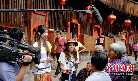 6月13日,日本株式会社TBS电视台开始在福建永定县“承启楼”拍摄客家文化专题节目。TBS电视台是日本五大民营无线电视台之一,此次拍摄的《世界奇异大发现》文化专题是一个旅行节目,主要向日本观众介绍世界各地的传统文化,今年7月将在日本播出。中新社发 刘永良 摄