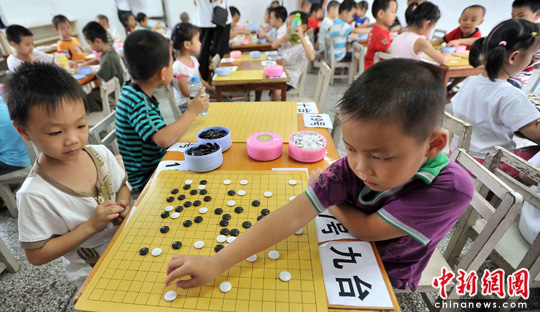 6月26日,一场少儿围棋比赛在革命老区——广西百色市平果县城隆重举行,116名来自该县各小学、幼儿园的少儿围棋爱好者同场对弈,争夺到南宁市参加广西总决赛的资格。中新社发 罗郅肯 摄