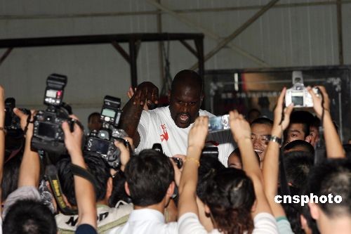 7月13日,NBA球星“大鲨鱼”奥尼尔一行造访了河南少林寺,并在少林寺练功房内欣赏武僧们的功夫表演。中新社发 王中举 摄
