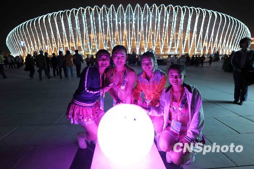 十月十六日晚,济南奥体中心华丽多彩迎接第十一届全运会开幕。中新社发 陈文 摄