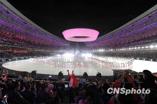 十月十六日晚,中华人民共和国第十一届运动会在山东济南奥体中心隆重开幕。中新社发 陈文 摄