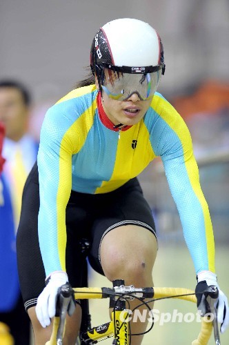 10月17日上午,河北选手李雪妹以33.898的成绩夺得第十一届全运会500米自行车计时赛冠军,该成绩超亚洲纪录、破全国纪录。中新社发 陈文 摄
