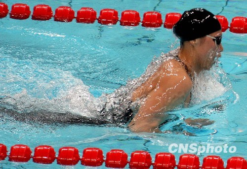 10月20日晚,在济南奥体中心游泳馆进行的女子200米个人混合泳决赛中,解放军代表队的齐晖以2:08.32的成绩获得冠军,并打破了亚洲纪录。图为齐晖在比赛中。中新社发 刘震 摄