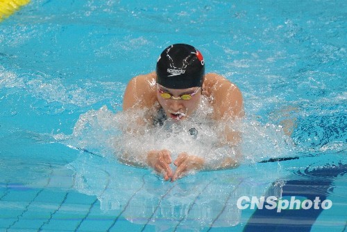 2009年10月21日,全运会游泳比赛男子200米蛙泳比赛中,天津队选手马祥以2分12秒37的成绩获得冠军。湖南队选手黄朝升和山西队选手薛瑞鹏分别获得2、3名。中新社发 张侃 摄