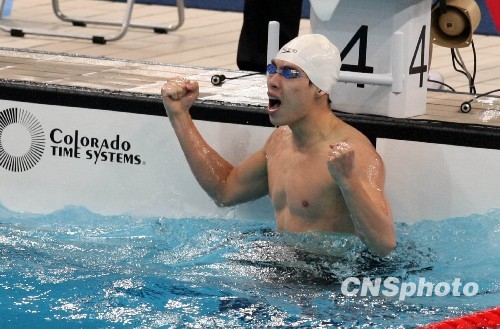 10月22日晚,在全运会男子200米个人混合泳决赛中,广西选手张子山以1分58秒53获得冠军。中新社发 汤彦俊 摄