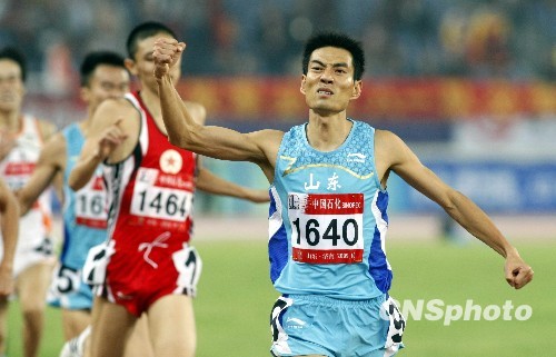10月23日,第十一届全运会田径比赛进行男子1500米决赛,来自山东的孙文利夺冠。中新社发 张宇 摄