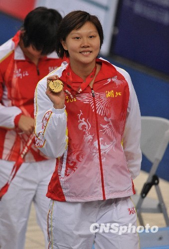 10月23日,湖北队选手赵菁以2分7秒57的成绩夺得第11届全运会女子200米仰泳冠军。中新社发 吴峻 摄