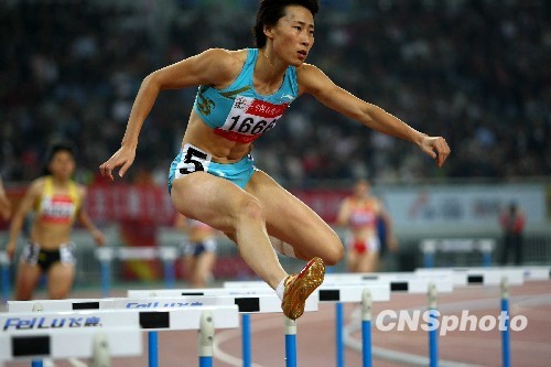 10月25日,在十一运会田径女子400米栏决赛中,山东队黄潇潇以55秒49的成绩夺得冠军。 中新社发 富田 摄