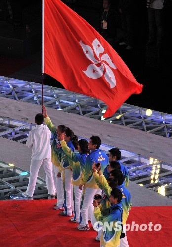10月28日晚,第十一届全运会在山东济南闭幕,图为香港代表团入场。中新社发 张宇 摄
