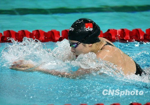 十二月八日,香港举办的东亚运动会进入第四天赛程,中国选手陈慧佳以1分05秒64夺得女子100米蛙泳金牌。当天,共有二十枚金牌产生。包括游泳八枚、保龄球二枚、射击一枚、跆拳道六枚和举重三枚。中新社发 洪少葵 摄