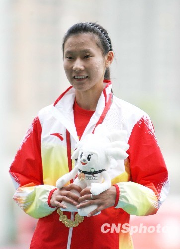 12月10日,第五届东亚运动会田径比赛在香港将军澳体育馆展开首日的争夺,在女子200米决赛中,中国选手蒋兰以23秒92绝对的优势夺冠。中新社发 洪少葵 摄