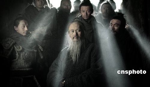 史诗电影《孔子》中孔子及其门徒的群像剧照。