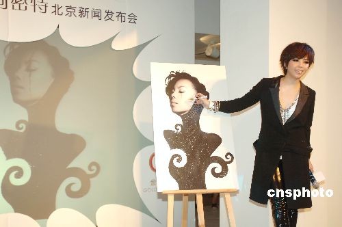 7月9日,阔别3年的张惠妹现身北京,携新专辑《阿密特》与媒体见面。阿妹的新专辑策划非常有创意,阿密特(A-MIT)是张惠妹的卑南族名字。阿妹还以专辑中第一首开场曲《分生》现场说法:“从‘张惠妹’这个音乐品牌里面分生,生出了另一个音乐品牌,《分生》就是这个意思,从张惠妹中分生出了完全独立的一个阿密特,一个只为歌唱而活,只为音乐而生的歌手。”整张专辑音乐充满实验性,金曲制作人“阿弟仔”与阿妹共同操刀制作,整张专辑弥漫着BANDSOUND氛围。创作阵容包括苏打绿的青峰、创作人小安、名作词人林夕、姚若龙、陈镇川。更特别的是,专辑还收录了张妈妈的作品,以及台语歌曲和原住民的传统古调。图为张惠妹为新专辑造型画上金色裂痕,象征阿密特破茧而出。中新社发 李学仕 摄