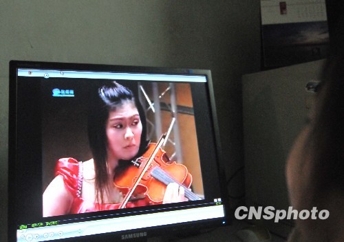 1月28日晚,杭州爱乐乐团全球直播乐团首场网络音乐会在杭州上演。音乐会在杭州大剧院演出通过视频直播首场网络音乐会,网上音乐会的声光效果可与现场聆听相媲美。这次的尝试,为很多不愿出门或者买不到票的爱乐迷提供了一个崭新的观赏平台和渠道。中新社发 引炜 摄