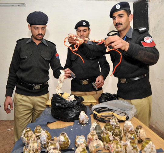 2月8日,巴基斯坦警方召开新闻发布会,宣布巴警方成功实施一次行动,逮捕6名企图针对美国人实施自杀式袭击的武装人员,缴获一件准备用于袭击的“自杀式背心”,这个背心内胆里缝入了26枚手榴弹。