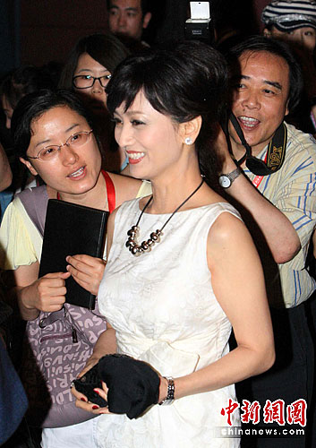 6月13日,“不老神话”赵雅芝一身白裙在上海国际电影节参加中国新片展开幕式,受到影迷和记者追捧。中新社发 潘索菲 摄