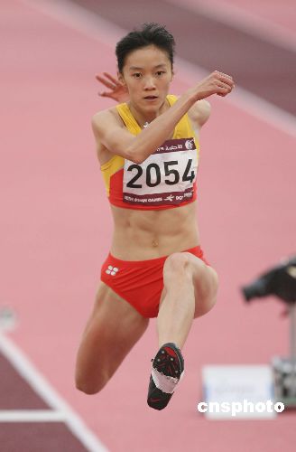 多哈当地时间十二月十一日下午,中国选手谢荔梅以十四米三十七的成绩夺得多哈亚运女子三级跳远金牌。中新社发 毛建军 摄