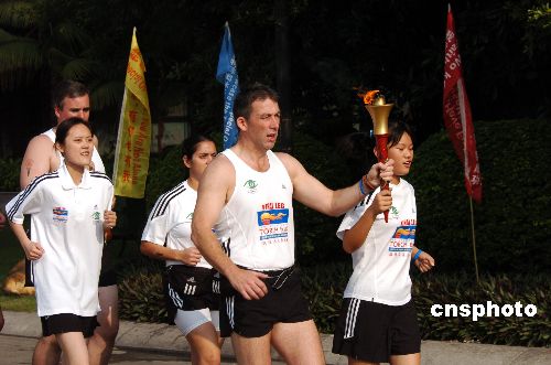 九月二十七日上午,二00七年世界夏季特殊奥运会执法人员火炬跑广州迎圣火和起跑仪式在天河体育中心举行。本月二十九日,各路火炬将汇集上海,迎接二00七年世界夏季特殊奥运会在上海的召开。中新社发 柯小军 摄