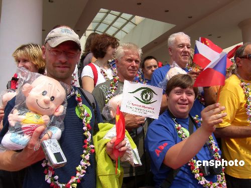 9月27日中午,参加上海“第12届世界夏季特殊奥林匹克运动会”的捷克特奥会代表团顺利到达无锡。他们将参加于10月2日在上海举行特奥会上的田径、游泳、自行车等9个项目的比赛。中新社发 盛国平 摄
