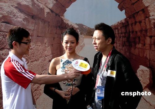 3月24日,北京奥运会圣火在奥运会发源地希腊古奥林匹亚遗址点燃,奥运官网全程视频直播奥运圣火采集仪式。国际巨星章子怡与搜狐公司董事局主席兼首席执行官张朝阳作为观礼嘉宾出席仪式,并以奥运官网记者的身份通过电话连线、彩信、博客等方式,从观礼现场第一时间发回独家报道。图为张朝阳(右)、章子怡(中)在接受记者采访。中新社发 沈晨 摄
