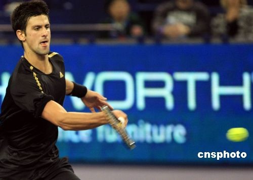 11月13日,在上海旗忠网球中心进行的上海大师杯单打金组最后一轮的比赛中,此前已经两战皆北的法国“阿里”特松加在晋级无望的情况下勇于拼搏上演大逆转,以2比1战胜世界排名第三的塞尔维亚选手德约科维奇,三盘比分是1-6/7-5/6-1,赢得荣誉之战。中新社发 汤彦俊 摄