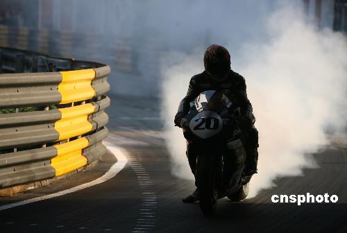 十一月十五日,英国选手伊斯顿(三号)在澳门举行的“名门世家”第五十五届澳门格兰披治大赛车上夺得第四十二届澳门格兰披治摩托车大赛冠军。中新社发 武仲林 摄