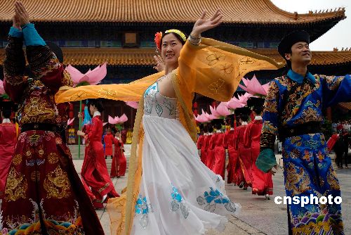 10月1日下午,广东珠海圆明新园《皇宫外传》开演中,芙蓉姐姐友情客串。当天“十一”黄金周第一天,以“我那妖媚性感的外形和冰清玉洁的气质”等语言以大“S”造型火透网络的芙蓉姐姐,在珠海圆明新园登台大型原创爆笑、荒诞情景式宫廷喜剧《皇宫外传》中友情客串。中新社发 双人鱼 摄