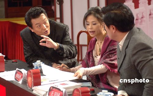 | 十二月七日,江中亮嗓“红楼梦中人”大型选秀活动组委会在北京大观园酒店召开发布会,宣布该活动台湾赛区正式设立。至此,该大型选秀活动全国十个赛区全部正式启动,成为全球华人共同参与的选秀活动,特别是有着相同中华传统文化、同根同源的两岸三地共同参与。图为当日在北京大观园举行的第二阶段选秀比赛在进行中。著名红学家“八七版”《红楼梦》编剧周岭(左),上一轮比赛评委田原鸿(田秣)(中),国家话剧院一级演员王卫国(右),担任评委。中新社发 邹宪 摄