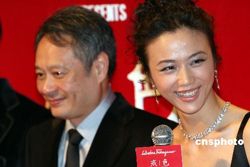 九月二十二日晚,刚刚夺得金狮奖的《色·戒》在香港举行首映礼,李安、汤唯等出席,吸引众多海内外传媒。中新社发 武仲林 摄
