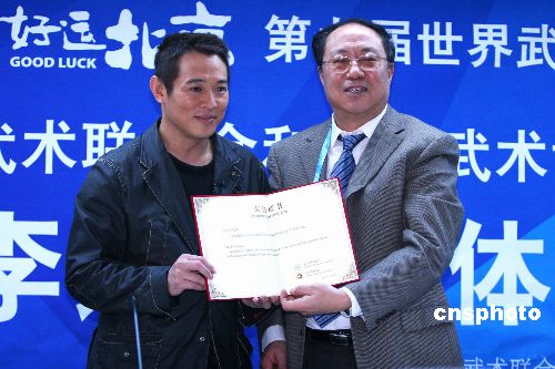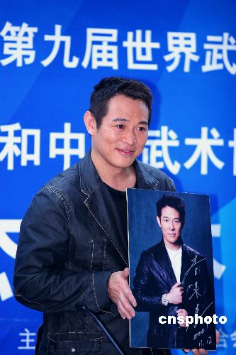 11月12日,昔日优秀的武术运动员、如今的国际著名武打影星李连杰,被国际武术联合会和中国武术协会任命为武术形象大使。中新社发 富田 摄