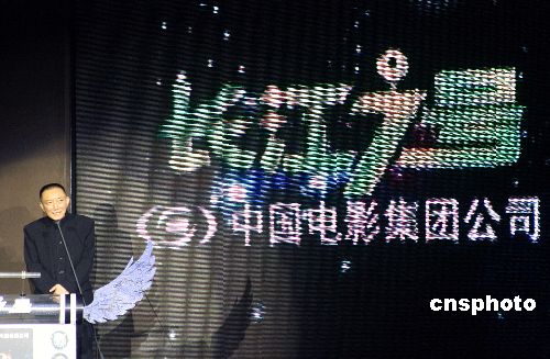 2008年1月24日,周星驰新作《长江七号》在北京欢乐谷举行盛大的首映庆典,《长江七号》在此揭开它的神秘面纱。图为韩三平为《长江七号》致词。中新社发 仲兆华 摄