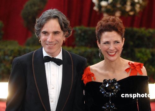 图:奥斯卡影帝丹尼尔·戴-刘易斯携妻走过红地毯