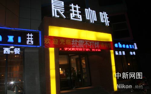 图:石家庄一咖啡厅打出“抗震不打烊”的口号