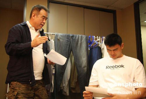 由陈凯歌执导,姚明担纲主角的抗震救灾公益宣传片日前在美国休斯敦开机,图为导演陈凯歌为姚明“说戏”。据介绍,该公益宣传片,是《2008分之1》公益短片行动的特别巨献,旨在宣扬中华民族不屈不挠,在灾难面前顽强奋斗的伟大精神,预计7月初在SMG旗下包括东方卫视在内的各大频道以及中国内地其它各省市级电视台播出。中新社发 王鹃 摄
