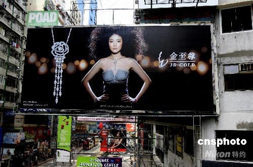 香港乐坛明星陈慧琳十八日晚在红磡体育馆举行演唱会时突然宣布婚讯,嫁给与之相恋了十六年的男友刘建浩,并与歌迷约定,结婚后不会退休,待生了孩子后会再来红馆开演唱会。曾在美国修读建筑的刘建浩,毕业后回港打理父亲制衣生意,后自组公司。图为香港街头陈慧琳代言的巨大广告。中新社发 王丽南 摄