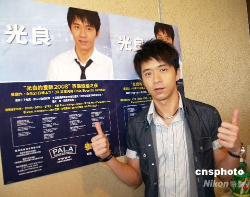 6月19日,马来西亚“情歌王子”光良飞抵美国洛杉矶,举办《光良的童话2008百乐浪漫之夜》,让洛杉矶广大华人歌迷有机会与光良近距离接触,受到热烈欢迎。中新社发 卢威 摄