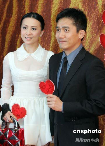 6月21日晚,梁朝伟携手刘嘉玲在上海出席《东邪西毒》终极版慈善首映,向四川灾区献出自己的爱心,本场电影的票房将悉数捐给四川灾区。中新社发 汤彦俊 摄