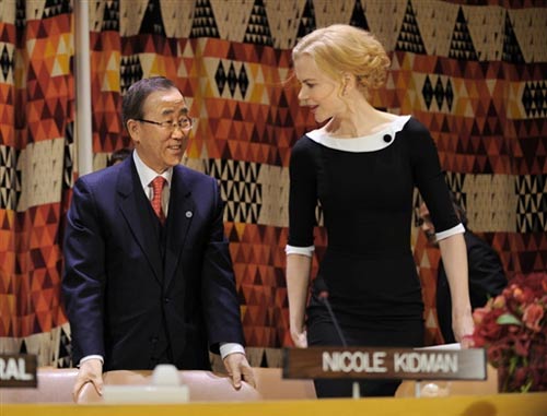 妮可亮相联合国总部 潘基文为其扶座椅