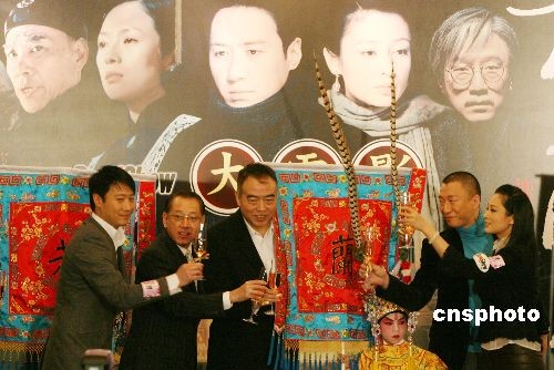 十二月十九日,著名导演陈凯歌携黎明、陈红、孙红雷等在香港举行记者会,为《梅兰芳》在香港上映造势,英皇集团主席杨受成等出席。据悉,电影《梅兰芳》在中国内地上映以来,票房已突破一亿元人民币。中新社发 武仲林 摄