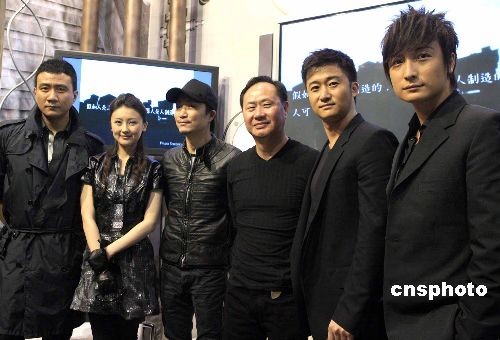 三月二十三日,首部华语科幻特效大片《机器侠》在第十三届“香港国际影视展”上举行了隆重的新闻发布会。图为导演刘镇伟、演员胡军、方力申、郑中基、吴京等在发布会上谈创作感受。中新社发 张勤 摄